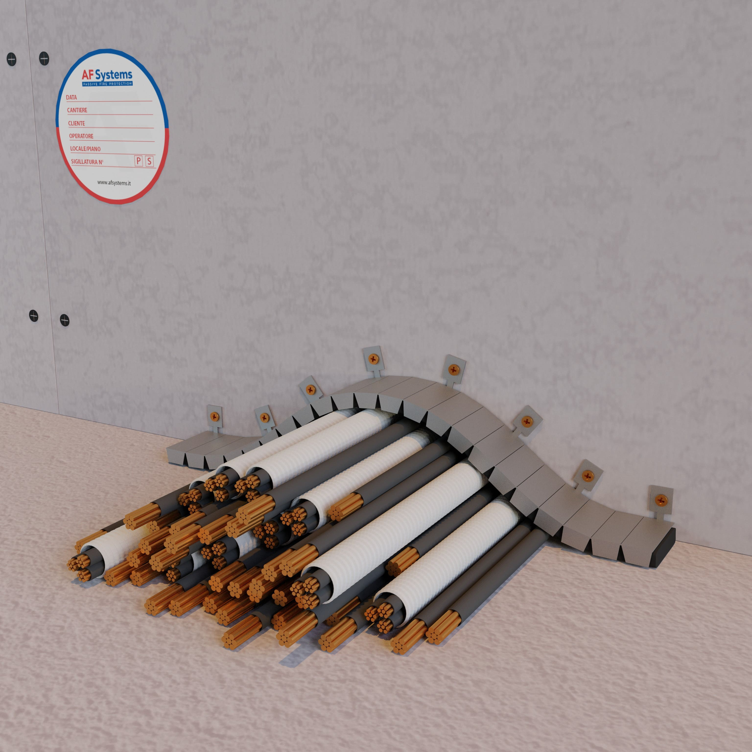 AF MULTICOLLAR est un collier coupe-feu modulaire certifé selon la norme EN 1366-3 pour le calfeutrement jusqu'à EI 240 des passages d’installations mécaniques et électriques, murs et planchers.